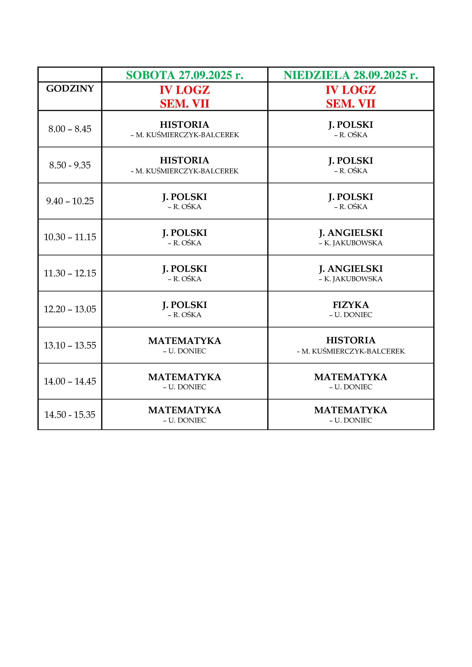 Zjazd 13-14.09.2025 r. IV LOGZ Niepubliczne Liceum Ogólnokształcące dla Dorosłych w Kozienicach