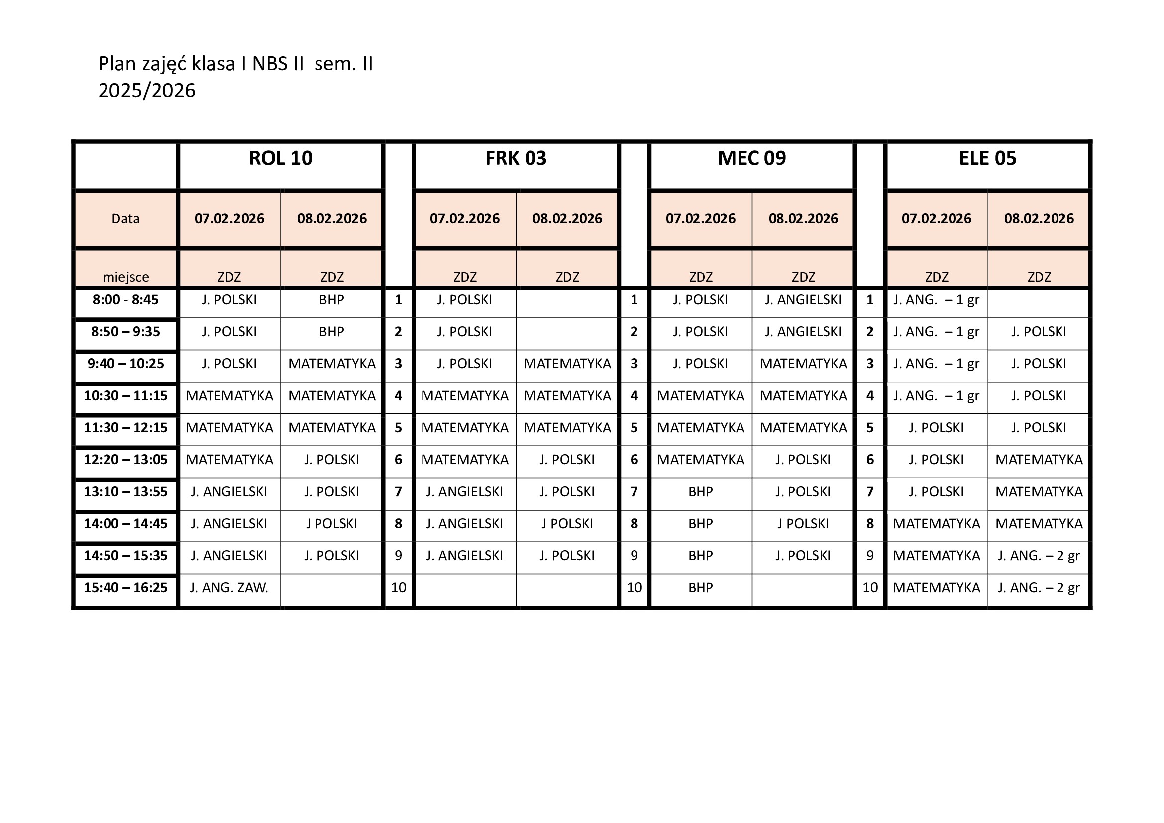 Zjazd 07-08.02.2026 r. Niepubliczna Branżowa Szkoła II stopnia w Kozienicach