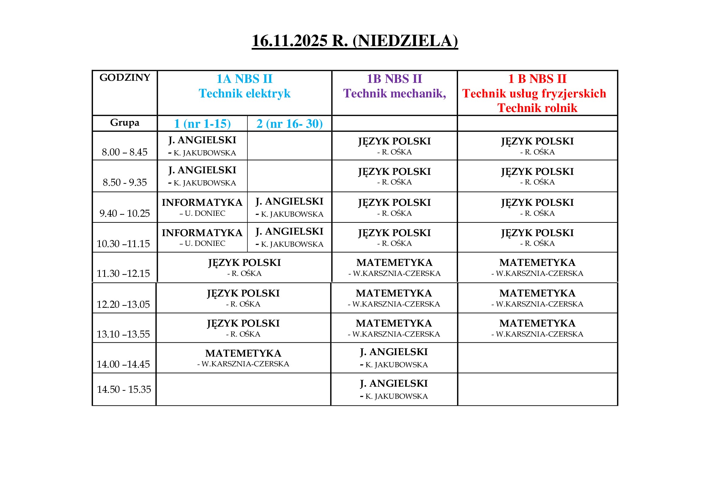 Zjazd 15-16.11.2025 r. Niepubliczna Barnżowa Szkoła II stopnia w Kozienicach