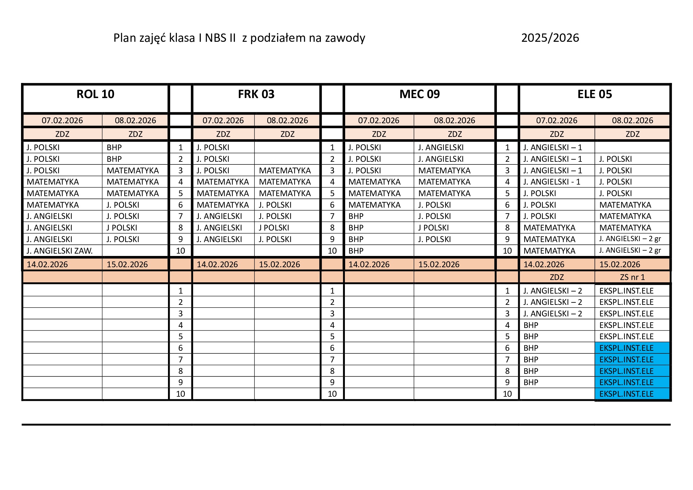 Zjazd 07-08.02.2026 r. oraz 14-15.02.2026 r. Niepubliczna Branżowa Szkoła II stopnia w Kozienicach