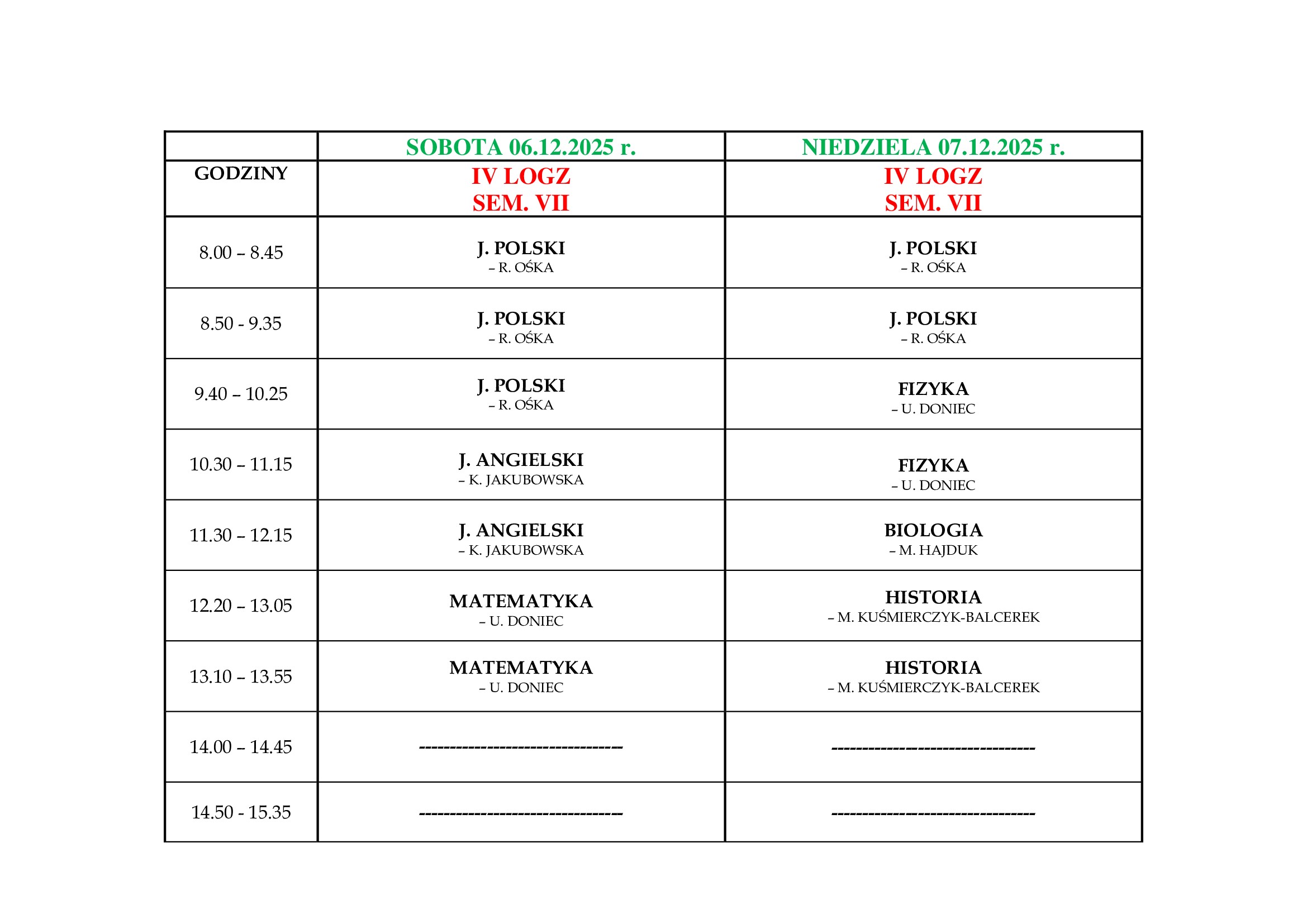Zjazd 06-07.12.2025 r. Niepubliczna Barnżowa Szkoła II stopnia w Kozienicach