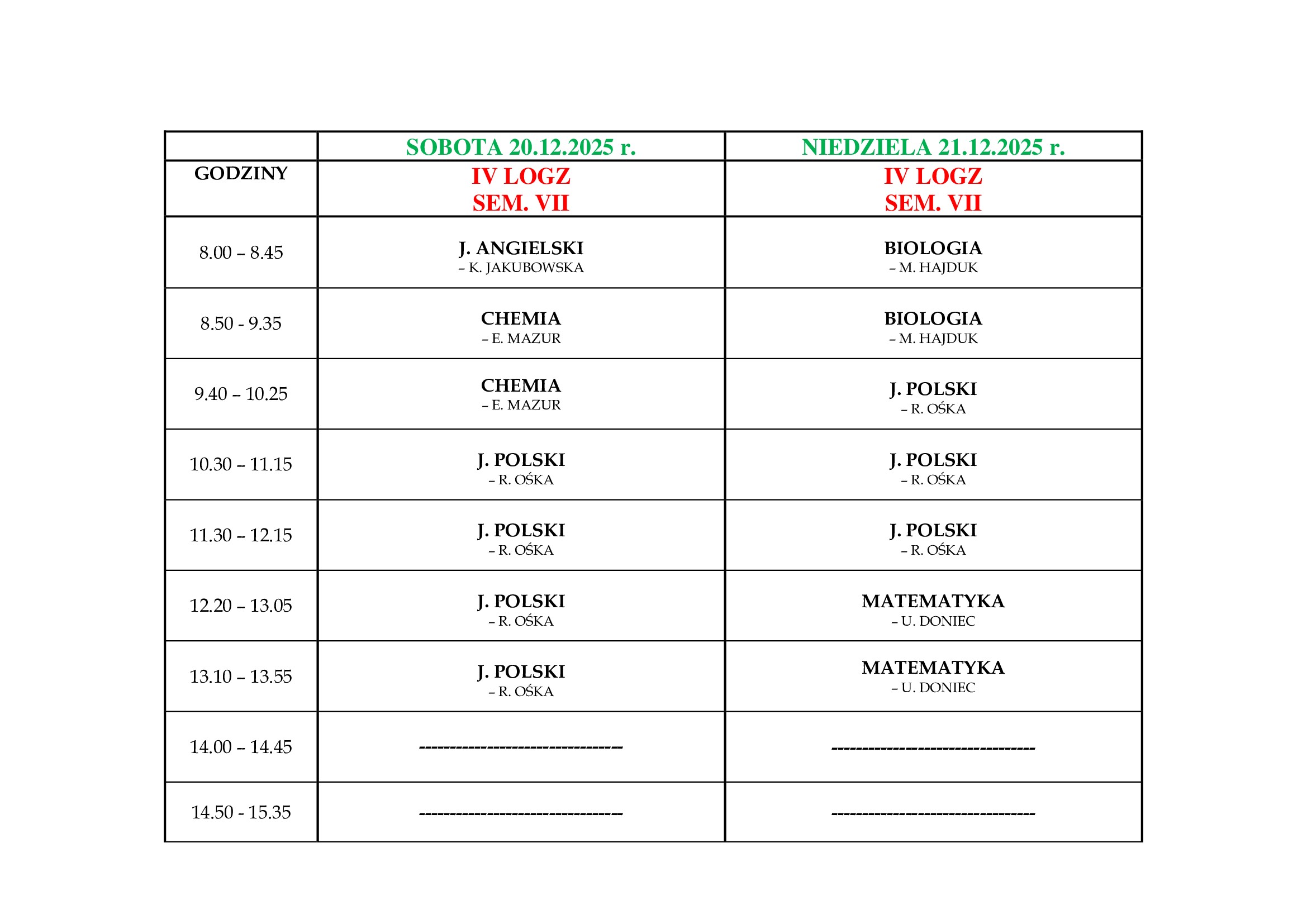Zjazd 20-21.12.2025 r. Niepubliczne Liceum Ogólnokształcące dla Dorosłych w Kozienicach ZDZ w Kielcach