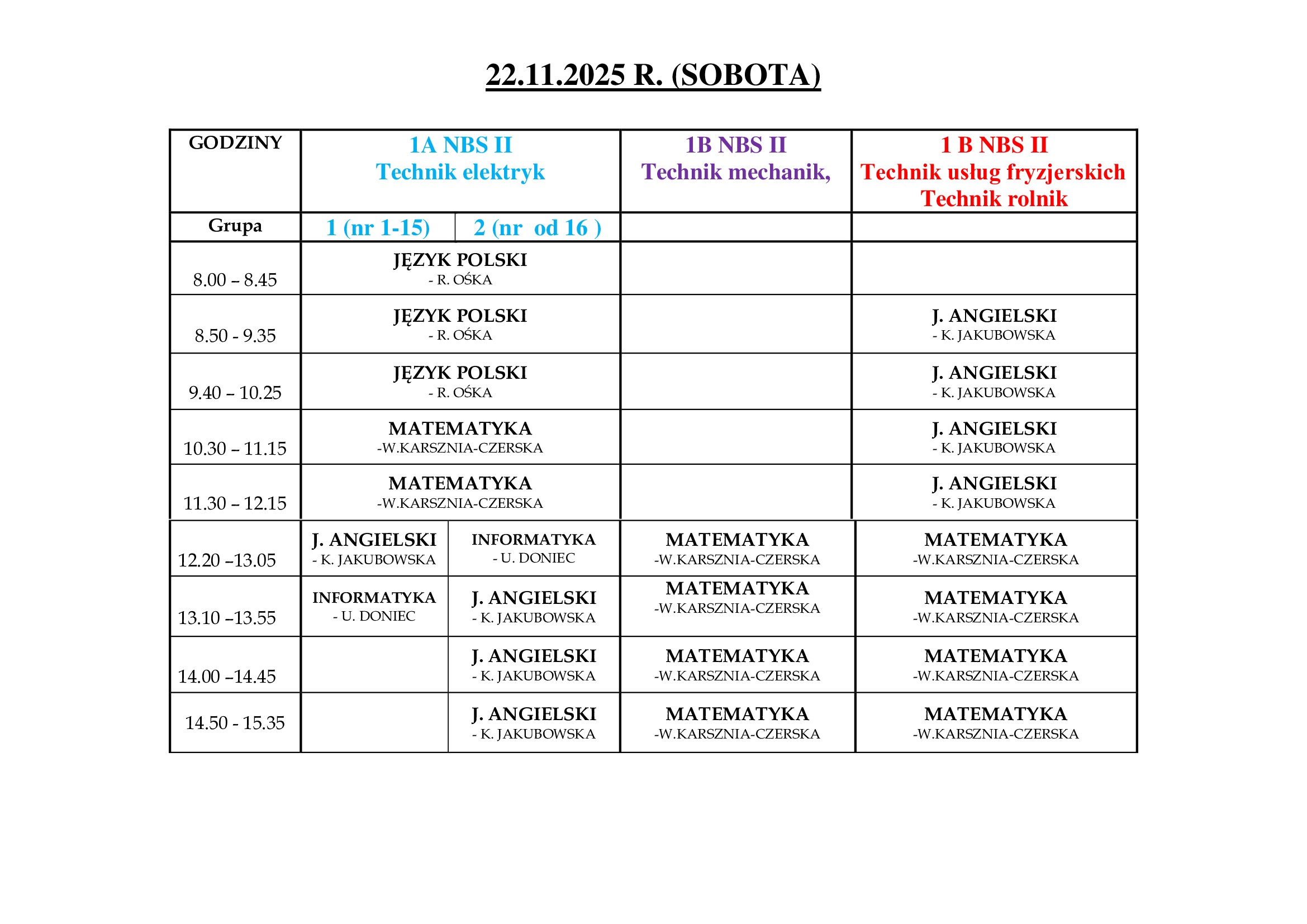 Zjazd 15-16.11.2025 r. Niepubliczna Barnżowa Szkoła II stopnia w Kozienicach
