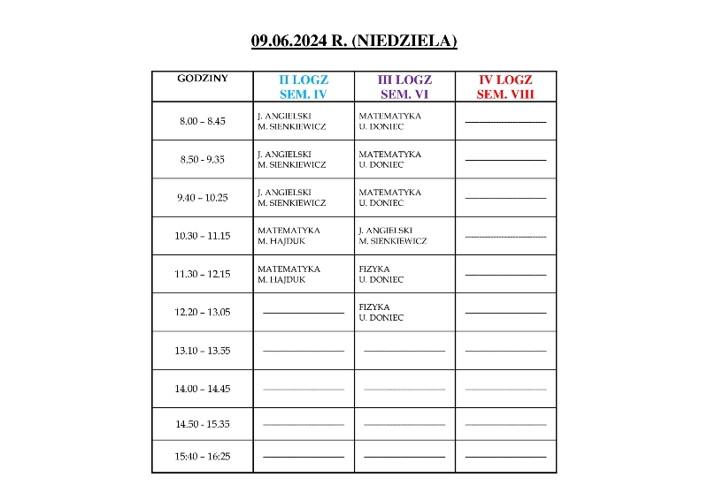 Plan zjazdu szkół zaocznych - 08/09.06.2024 r.