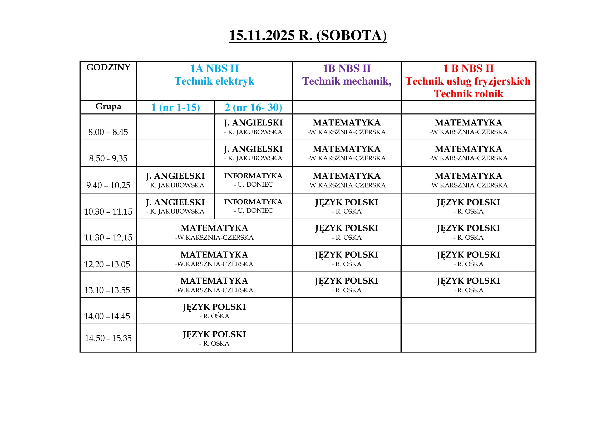 Zjazd 15-16.11.2025 r. Niepubliczna Barnżowa Szkoła II stopnia w Kozienicach