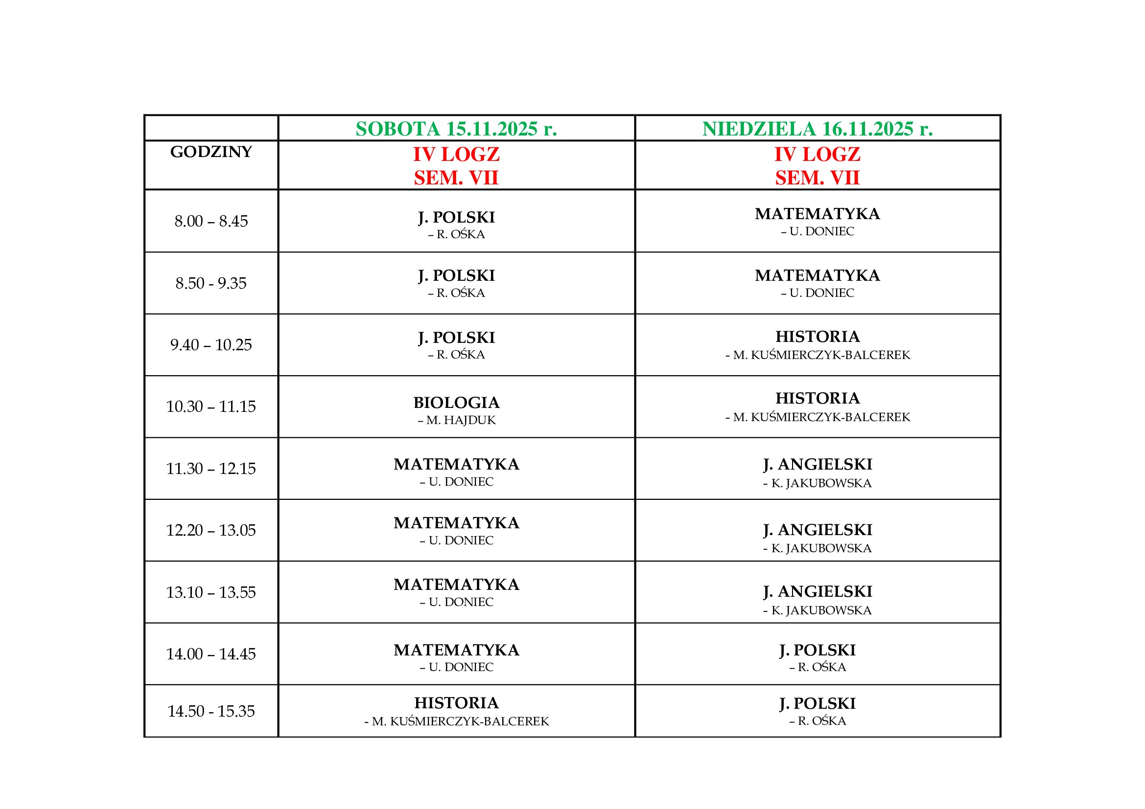 Zjazd 15-16.11.2025 r. Niepubliczne Liceum Ogólnokształcące dla Dorosłych w Kozienicach ZDZ w Kielcach