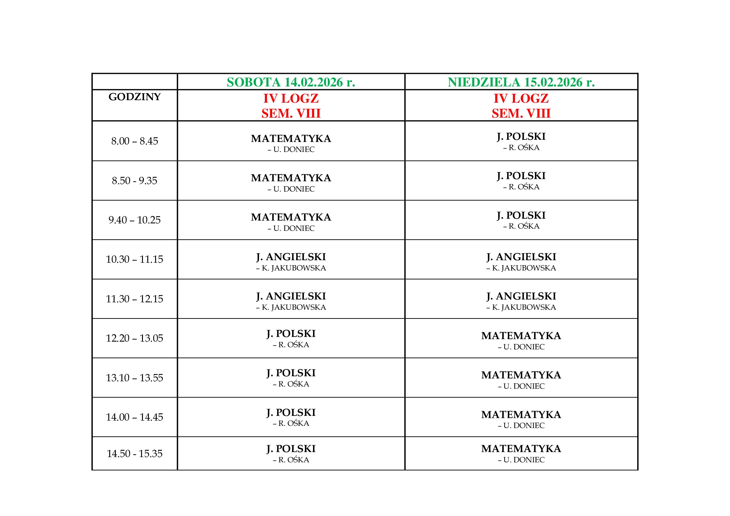 Zjazd 14-15.02.2026 r. IV LOGZ Niepubliczne Liceum Ogólnokształcące dla Dorosłych w Kozienicach